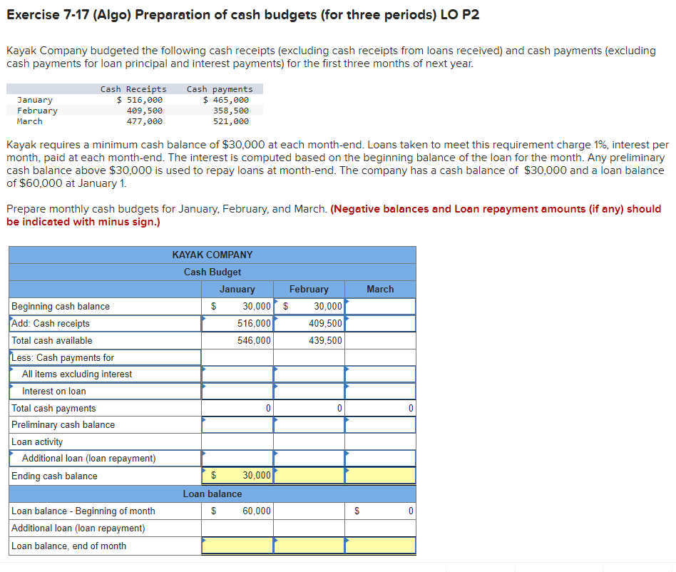 Solved Exercise 717 (Algo) Preparation of cash budgets (for